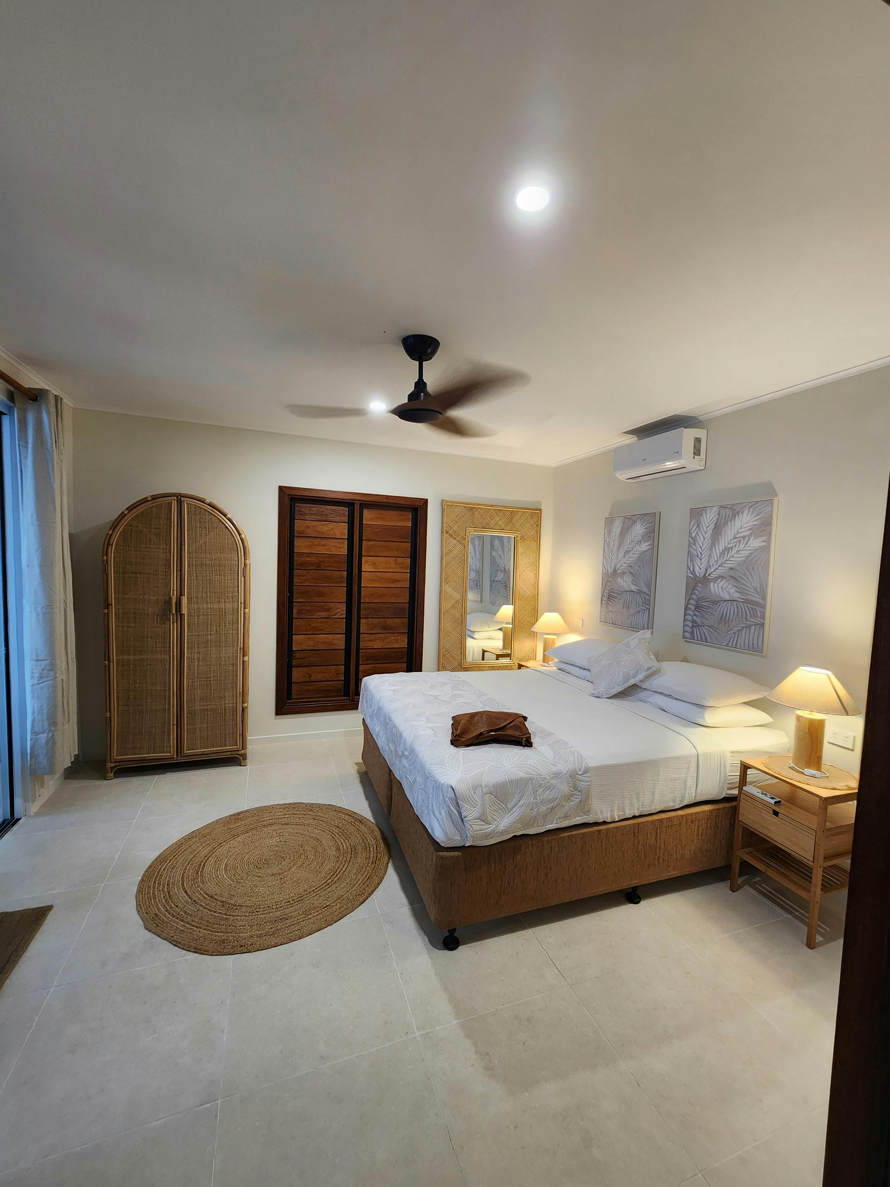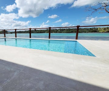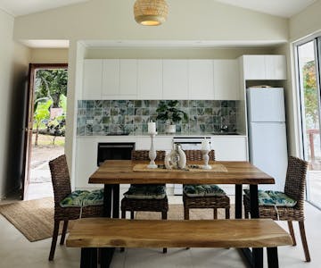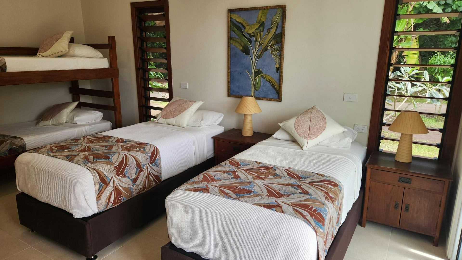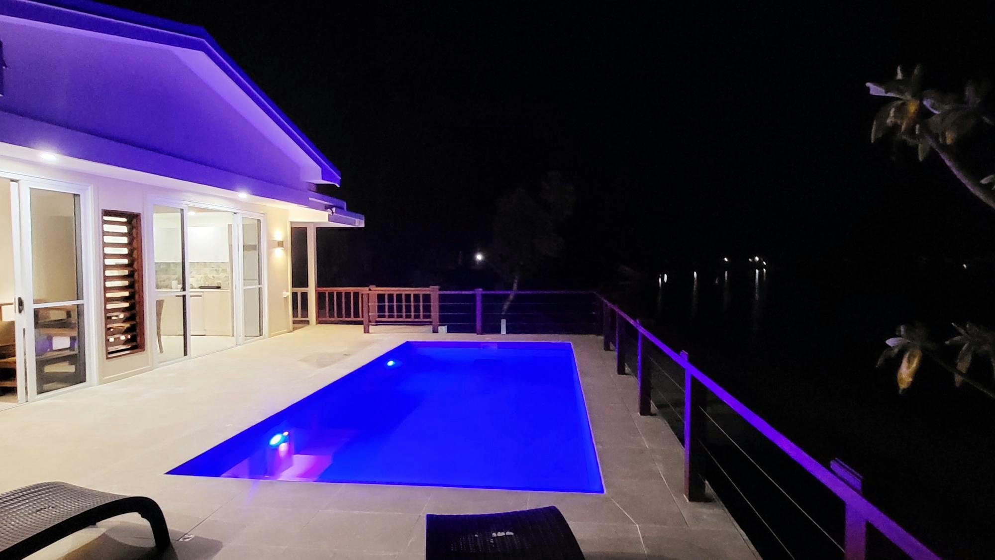 ABSOLUTE BEACHFRONT! 2 bdrm Beach House With POOL just steps from the blue lagoon waters. With 2 bedrooms and 2 bathrooms (Master with ensuite), fully self-contained with kitchen and laundry and entertainment deck with a pool and steps to the beach - it's got everything you need for a wonderful beach holiday - ideal for families or two couples or friends to share!