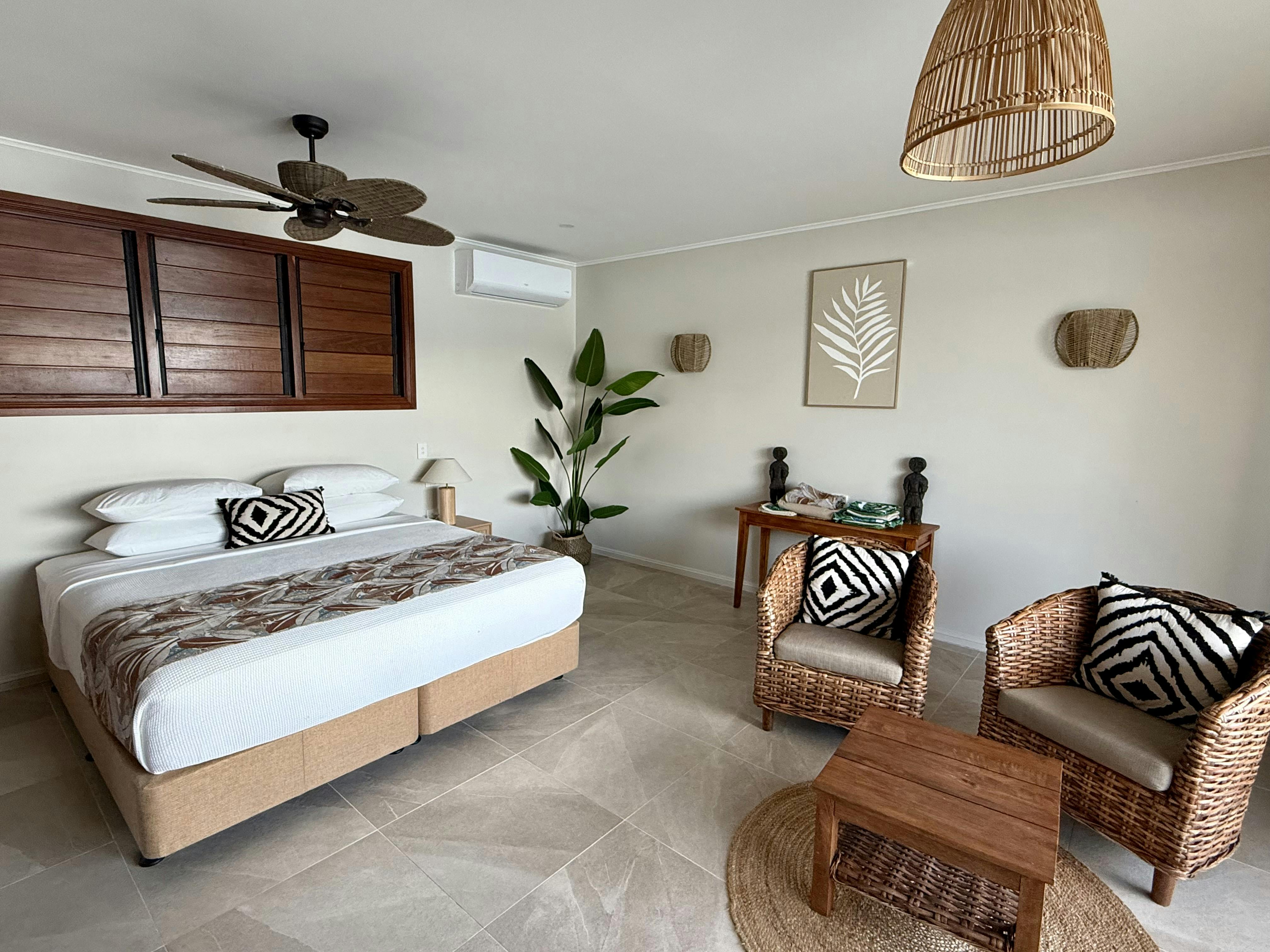 Walk in the door and be mesmerised by the amazing vista of the blue waters coming in from the Pacific Ocean! These lovely villas were opened in December 2025 and have a spacious, tropical vibe and are the perfect place for 2 people to relax and unwind.
