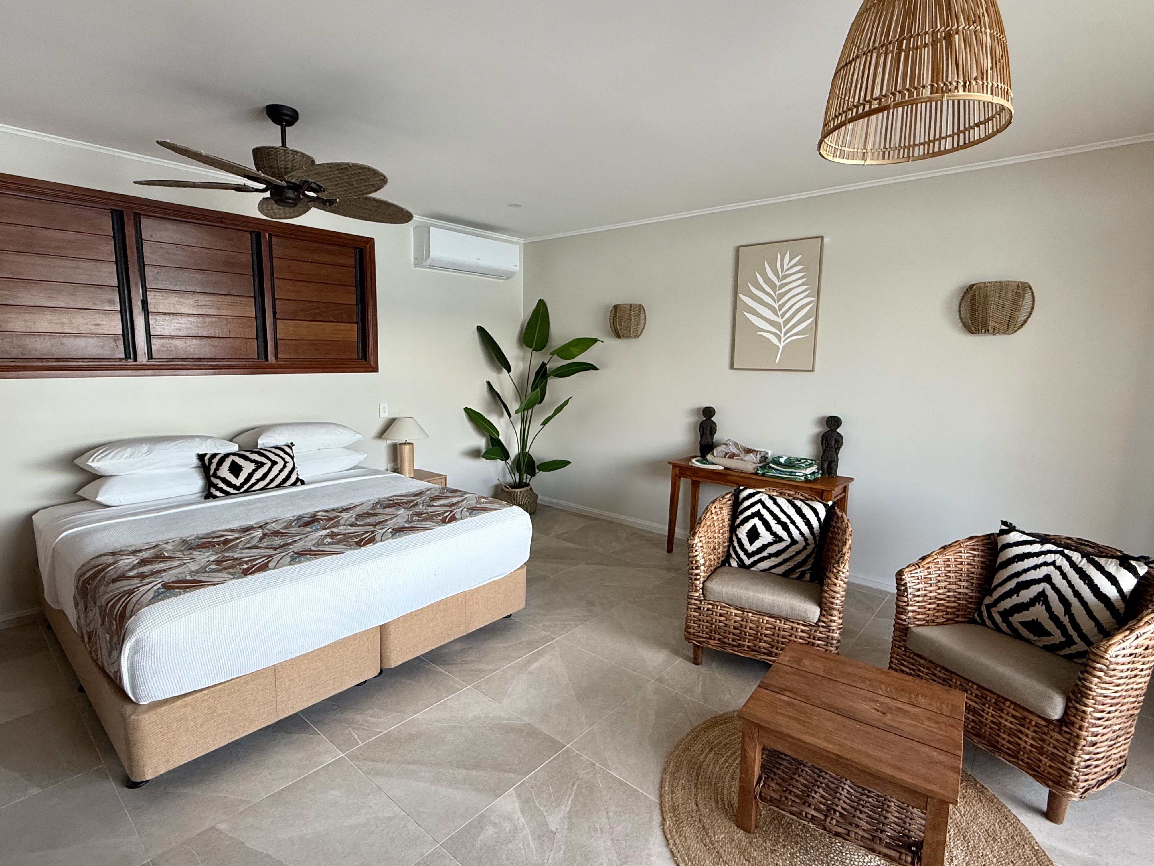 Walk in the door and be mesmerised by the amazing vista of the blue waters coming in from the Pacific Ocean! These lovely villas were opened in December 2025 and have a spacious, tropical vibe and are the perfect place for 2 people to relax and unwind.